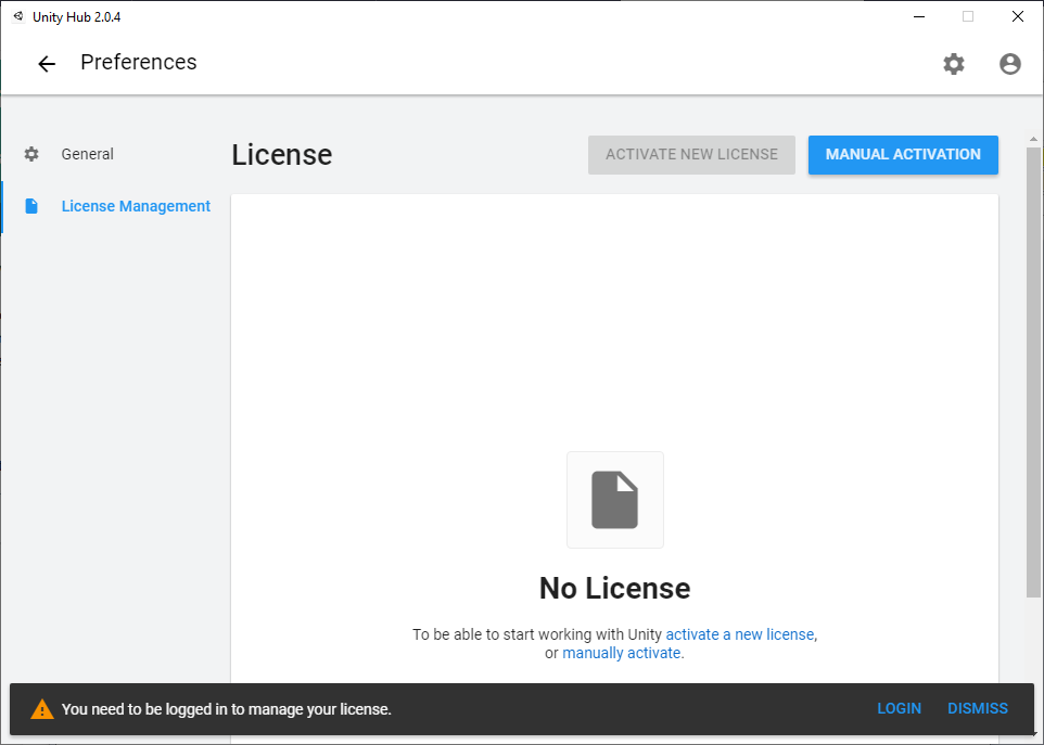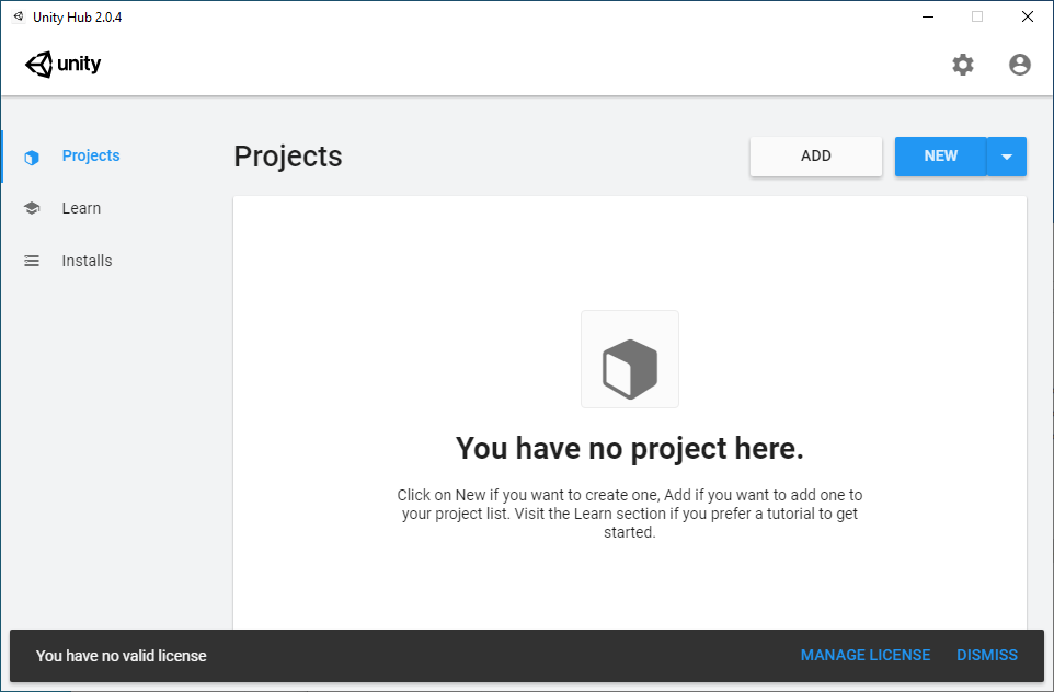 - Käynnistä Unity työpöydältä tai Windows-valikosta