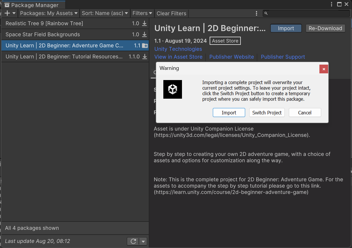 - avaa materiaali Asset Storesta. Sinun pitää valita ensin Import.