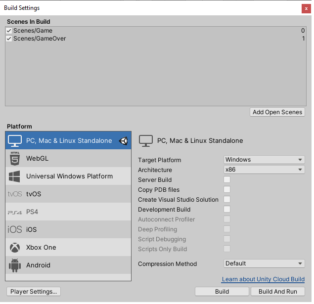 - Lisää kansioon Scenes uusi Scene Game ja lisää se Hierarchy-ikkunaan. Poista alkuperäinen SampleScene.