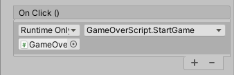 - Lisää GameOverScript-skriptille julkinen muuttuja