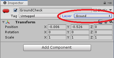 - Aseta GroundCheck tälle uudelle Ground-layerille.