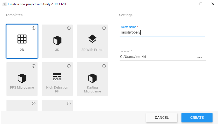 - Lisää kansiot Prefabs, Scenes, Sprites, Scripts