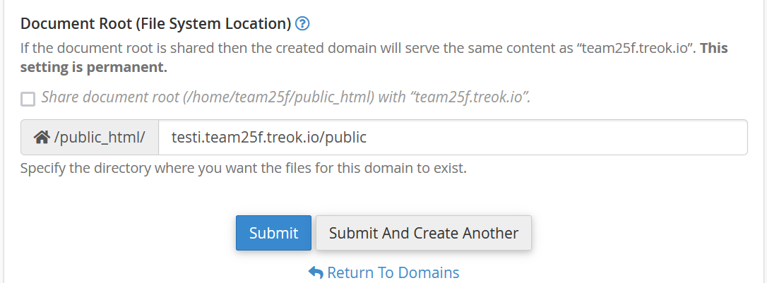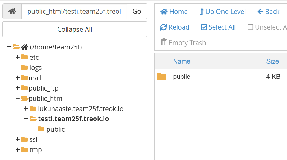 - Tarvittaessa lisää/muokkaa .htaccess-tiedostot public-kansion alla ja aseta tietokannan tunnukset oikein. Tietokannan host yleensä localhost julkisella palvelimella.