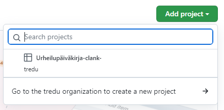 Siirry Tredu-organisaation sivulle luomaan uusi projekti (Go to tredu organization to create a new project).