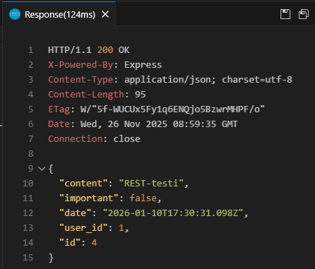 Lisää kansio tests REST-testeille. Tee tiedosto notes_get.http joka sisällöksi seuraava HTTP-pyyntö: